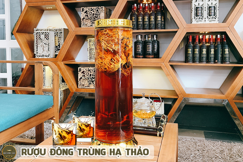 - Đông Trùng Hạ Thảo ngâm rượu có công dụng tuyệt vời cho sức khỏe của nam giới, giúp tăng cường sức khỏe sinh lí, bổ thận tráng dương cho phái mạnh. Đặc biệt, Rượu Đông Trùng Hạ Thảo khi uống vào không gây mệt mỏi, đau đầu, rất dễ uống và không gây ra tình trạng chóng mặt giống như các loại rượu thông thường khác khi dùng với liều lượng thích hợp.